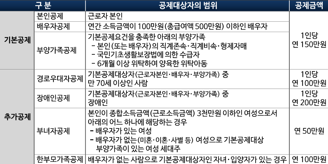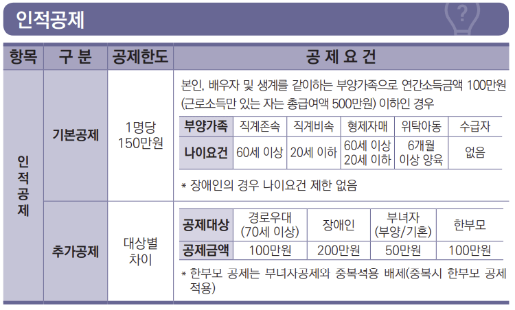 연말정산 부양가족 기준 부녀자 공제 조건 인적 추가 대상